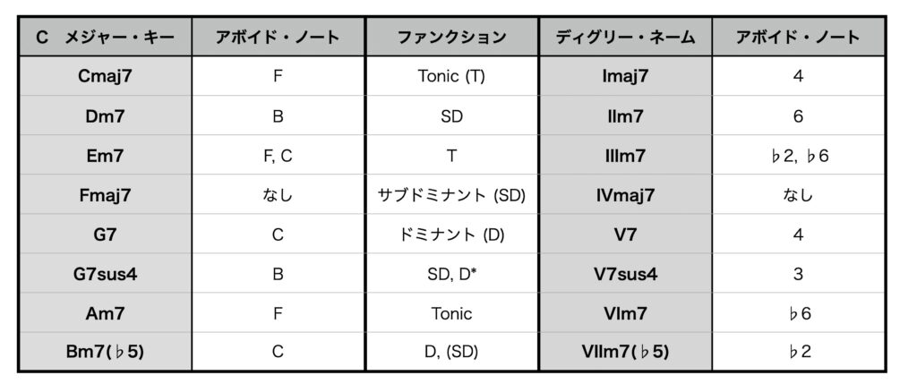 【まとめ】ダイアトニック・コード(メジャーキー)とアボイド・ノートについて