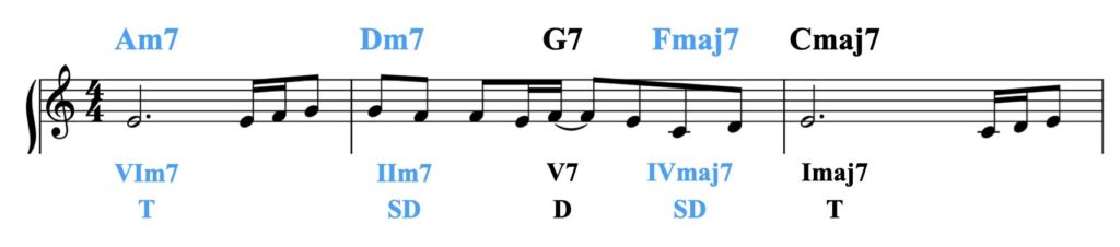 同じファンクションを持つコードは構成音が似ているため、自然な響きでコードを置き換えることができます。