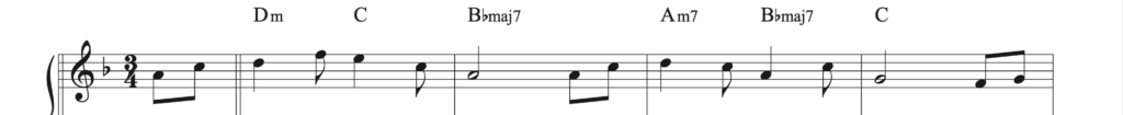 リハモ例:Dm → C → B♭maj7 → → Am7 → B♭maj7 → C