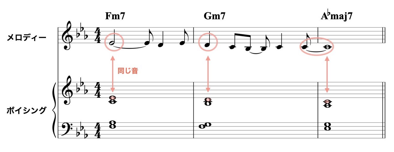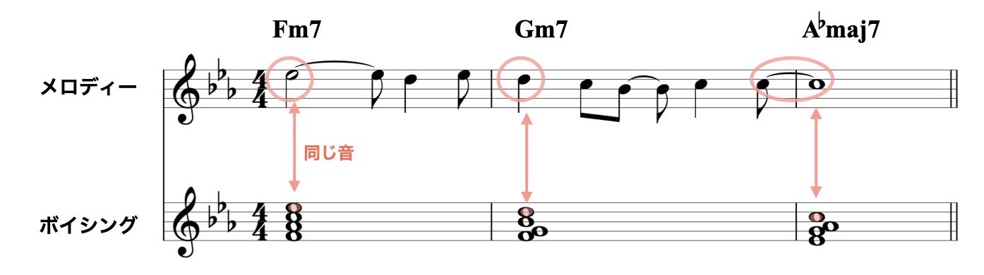 メロディーと同じ音をトップ・ノートにしたボイシング