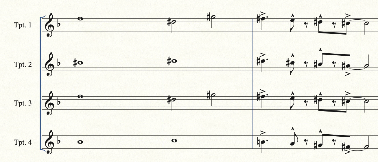 トランペット・セクションは少し特殊で、トランペット3がトランペット1のサポートをすることがあるので必ずしも音が高い順に見えないことがあります。