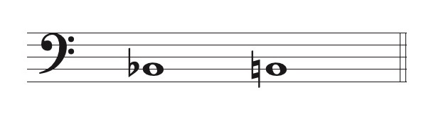 楽譜を作るとき移調の必要はありませんが、ヘ音記号を使った低音部譜表で作ります。