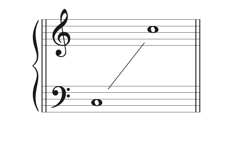 楽譜は1段で記譜します。もし実音で書かれた楽譜のままだと、ト音記号(高音部譜表)だけでも、ヘ音記号(低音部譜表)だけでも加線をたくさん使うことになってしまい非常に読みにくい楽譜になってしまいます。