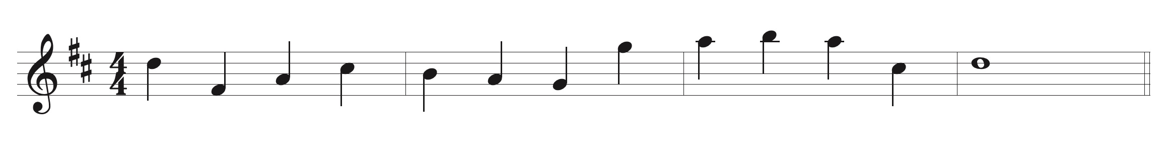 【例1】ト音記号(高音部譜表)のメロディー ・・・下に加線が増え読みづらい楽譜です。