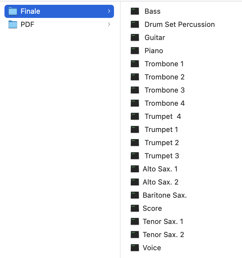 かなり昔に作ったビッグ・バンド・スコアは、パート譜まで個別のファイルができているものまで出てきました?