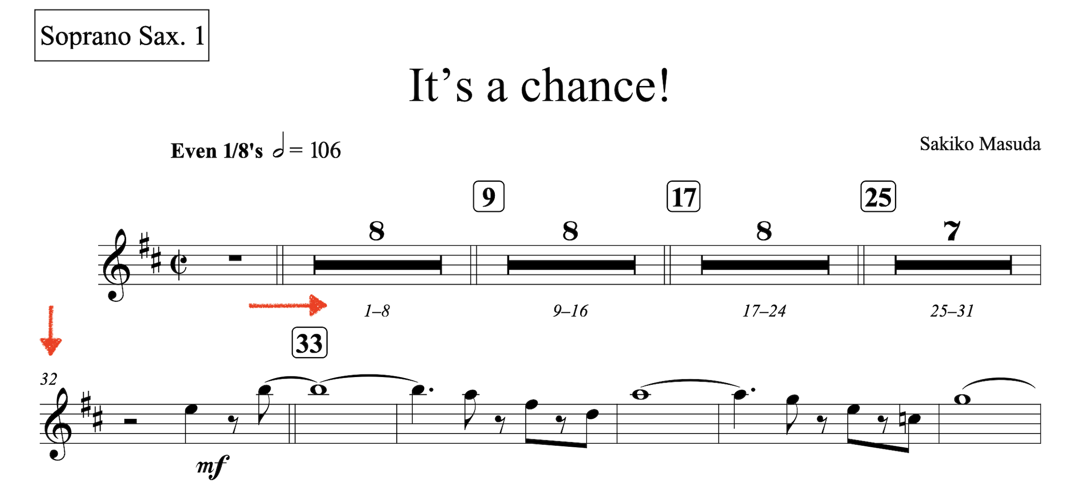 ビッグバンドのように、リハーサルで「○○小節目の音について…」と質問や指示を出すことが多い場合は、小節番号があると便利です。