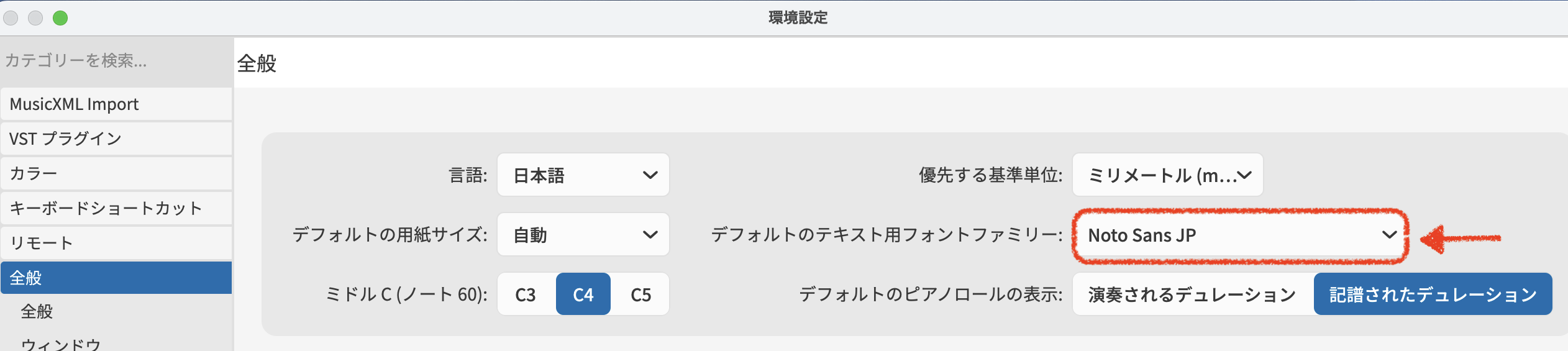 もし特定のテキストフォントを使いたい場合は、音楽フォント変更後に設定が必要です。