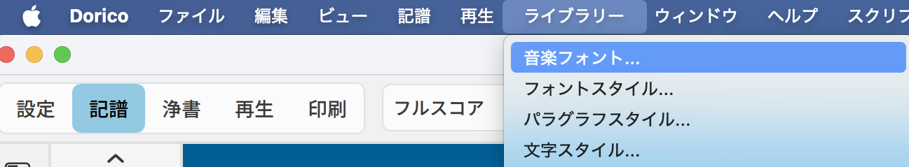 作成途中のファイルや、Finaleなど他のソフトからエクスポートしたMusicXMLファイル を開いた後でも、音楽フォントを変更できます。