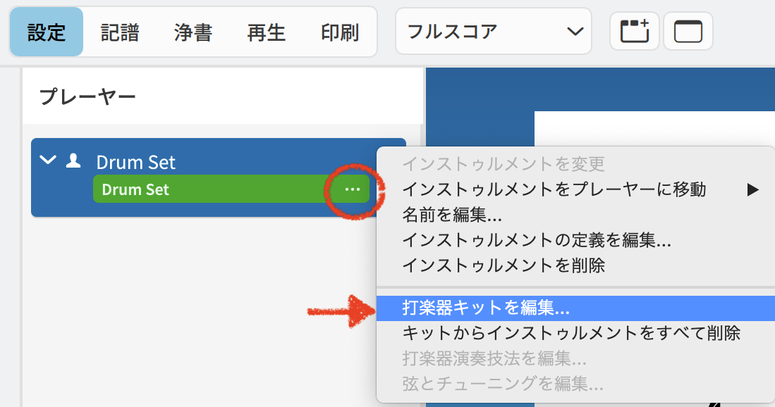 - 「打楽器キットを編集」を選択します。