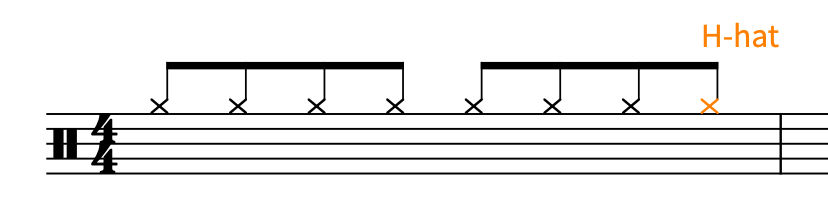 ① ハイハット(Hi-hat) を入力する。