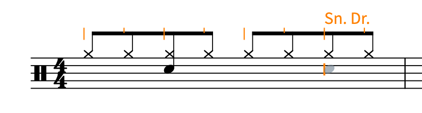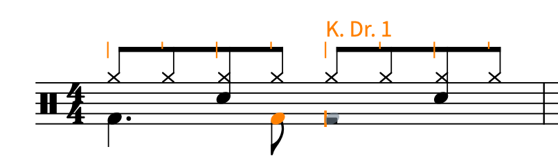ドラム譜でよく使うパーツ(スネア、キック、ハイハットなど)を確認しておくと、スムーズに入力できます。