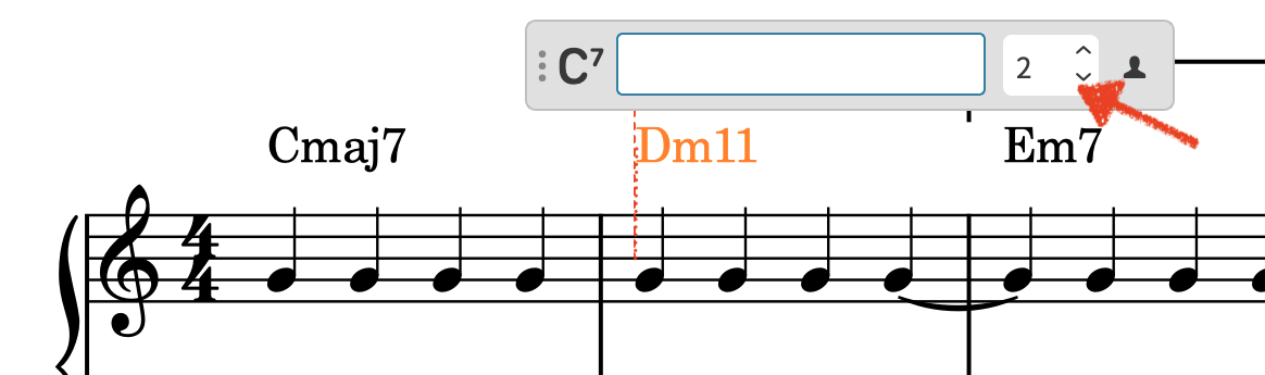 Shift + Q でコード記号の入力ダイアログボックスを開くと、右側に数字の欄が表示されます。