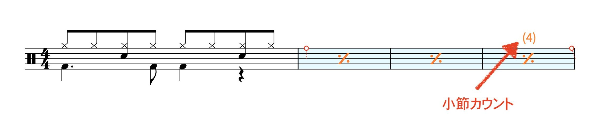 ドラム譜における小節リピートの作成方法とスラッシュと小節リピートの使い分けについて解説しました。