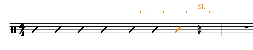 スラッシュは、ドラム譜で一定のリズムパターンを自由に演奏することを意味します。