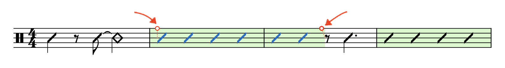 スラッシュ領域や符頭付きスラッシュを使い分けながら、リズム譜を作成してみましょう!