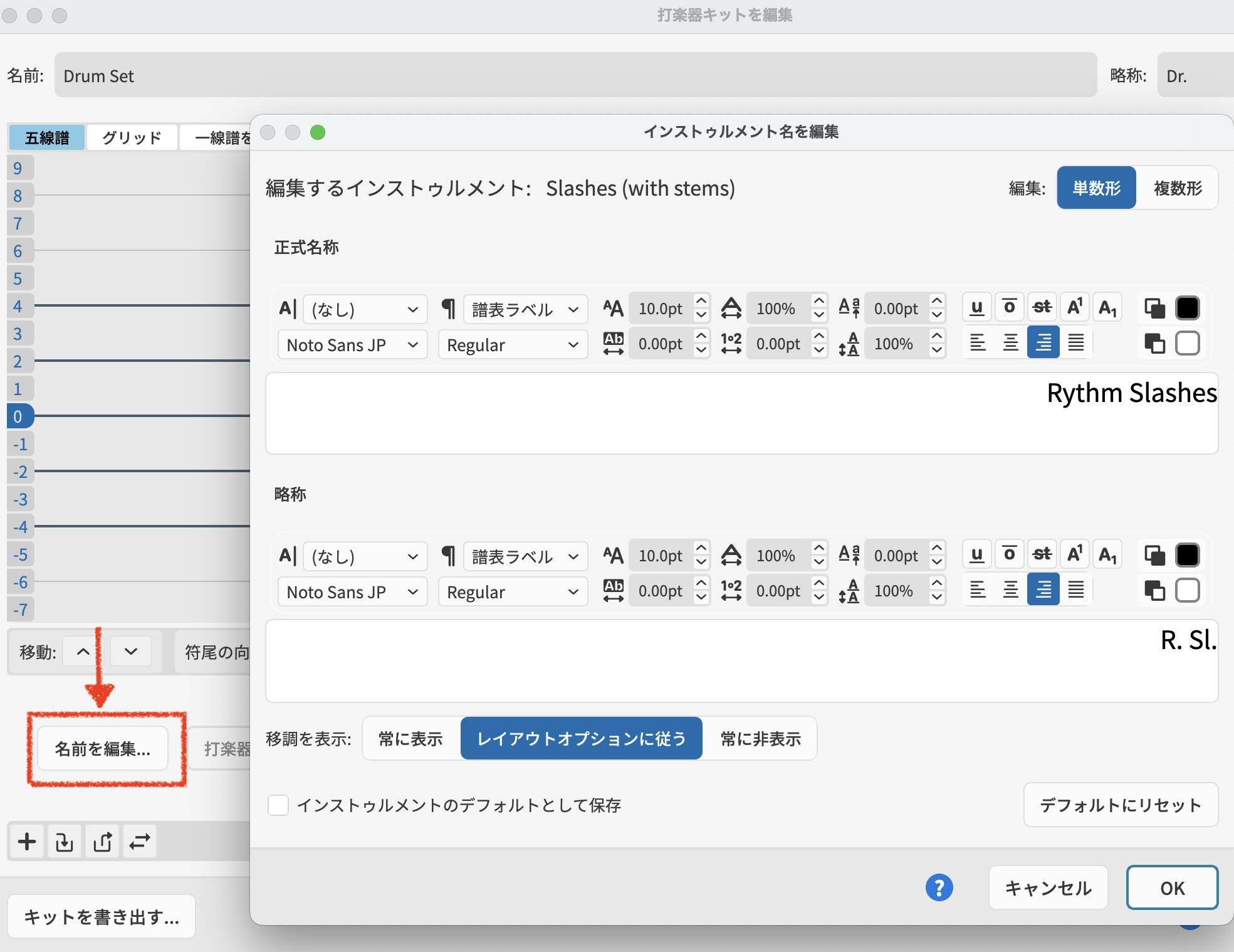 「打楽器キットを編集」ダイアログについて:前回のまずは音符入力が基本です!【Doricoドラム譜 No.1】をご参考ください。