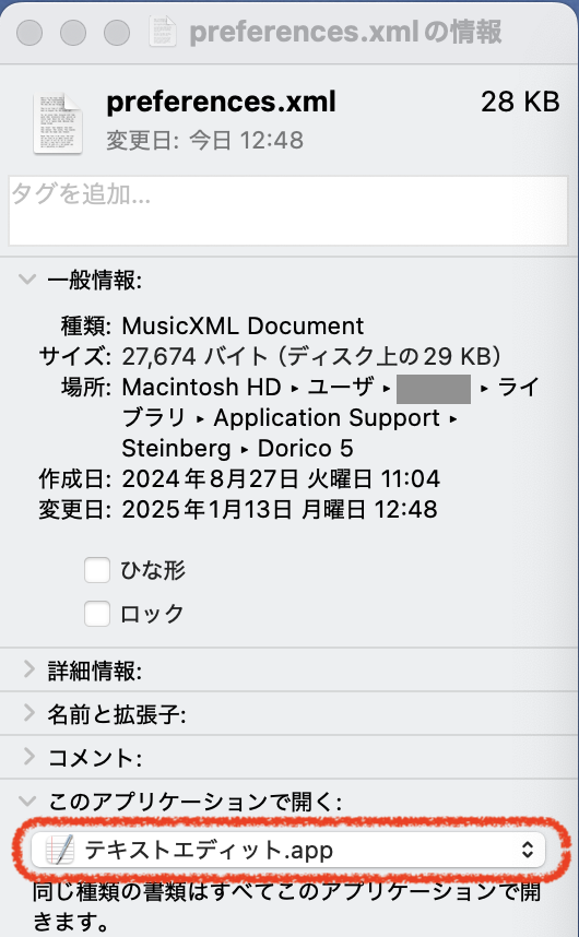 ❸『preferences.xml』ファイルをテキストエディット.appで開く