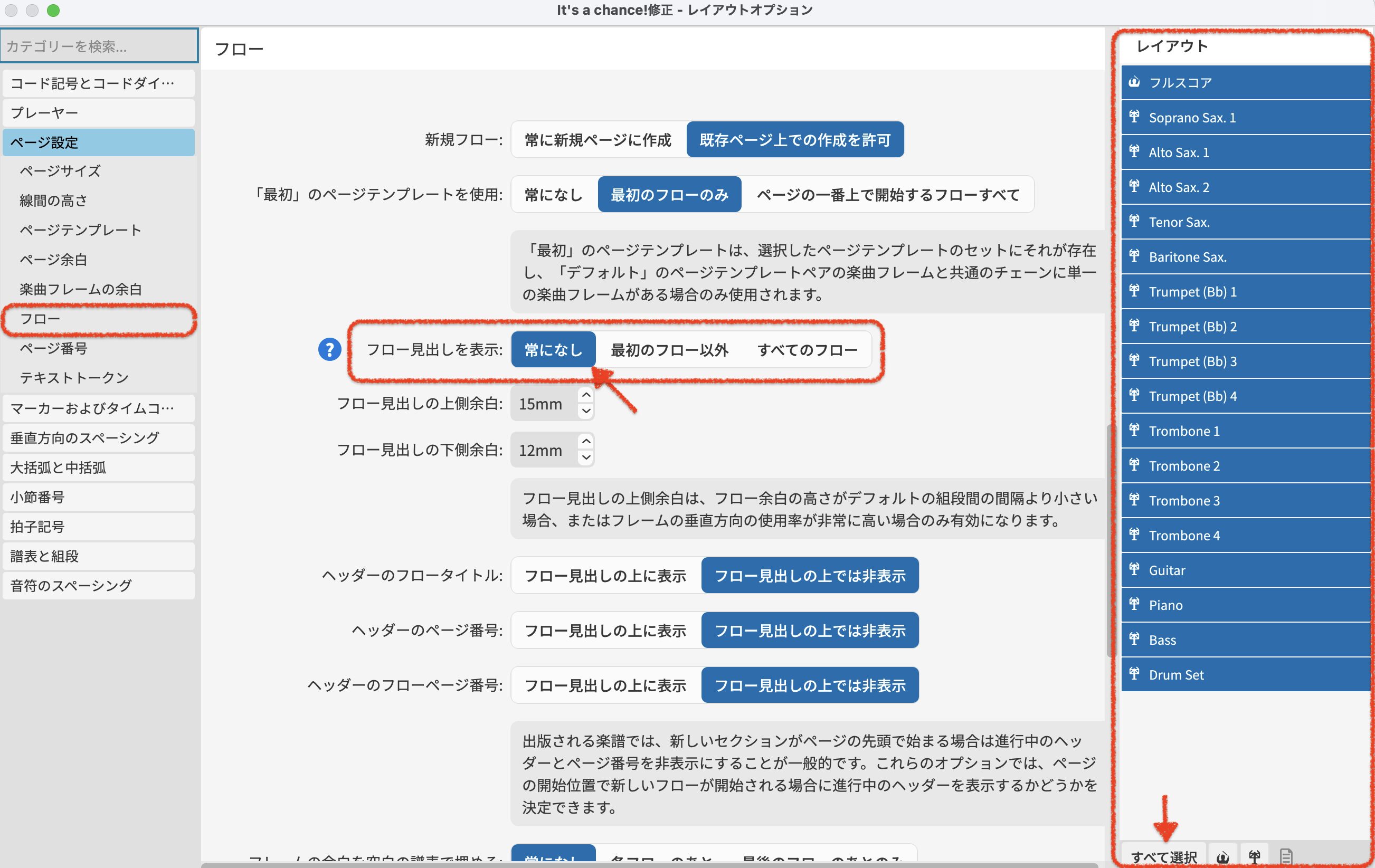 Dorico:フローとは?フロー名を非表示にする方法|ビッグバンド譜修正【No.6】