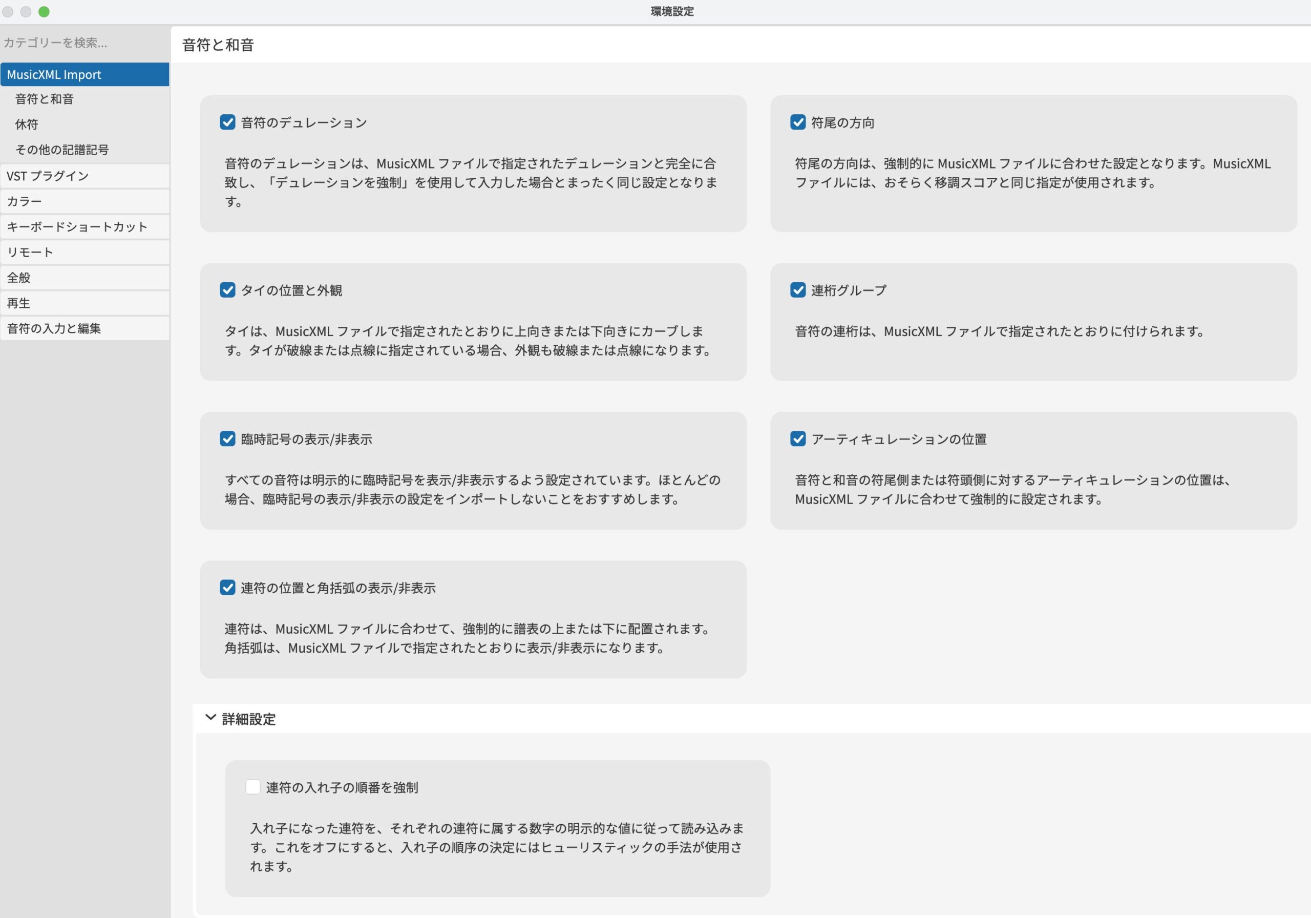 そんなトラブルを避けるためには、Doricoの環境設定でMusicXML Importの設定を見直すことが重要です。