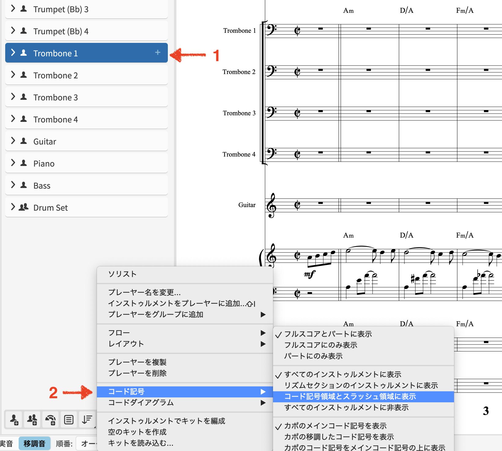 Doricoでコードネームを必要なパートに表示する方法|ビッグバンド譜修正【No.5】