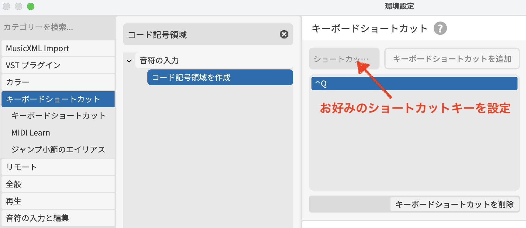 よく使う操作は、環境設定からショートカットキーを作るのがおすすめです。