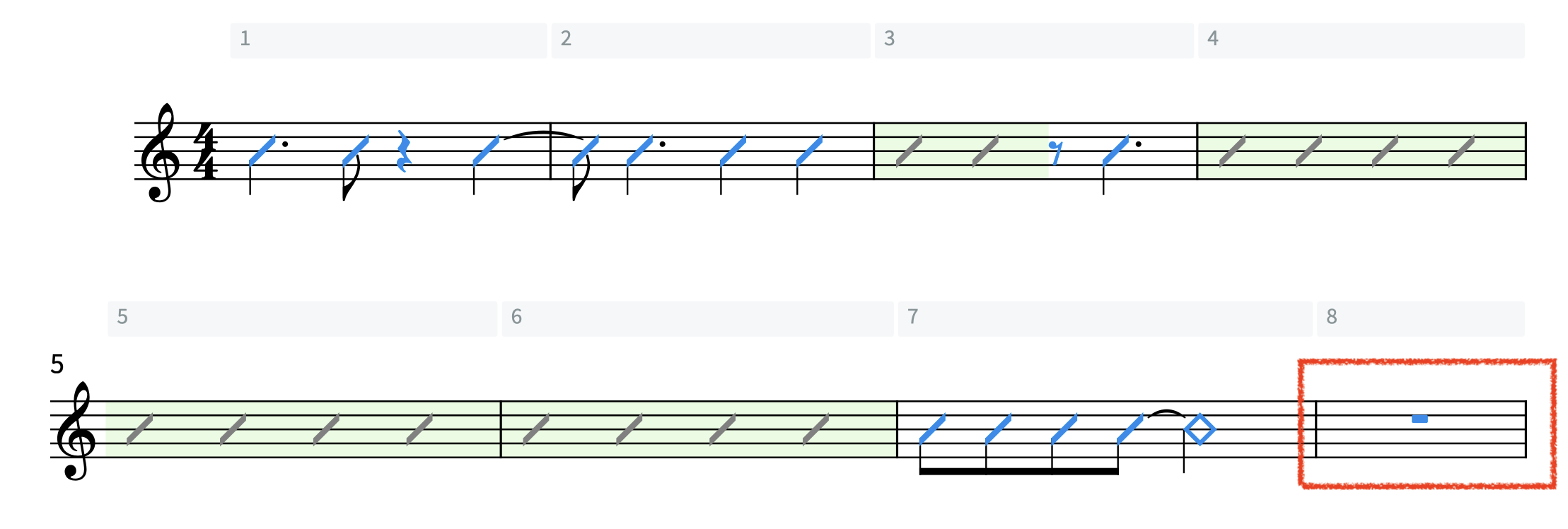 - 音を再生時に影響がない、または再生しないなどの場合は、適当な音符を入力しても問題ありません。この場合、スラッシュにしたい箇所に音符を入力する必要はありません。