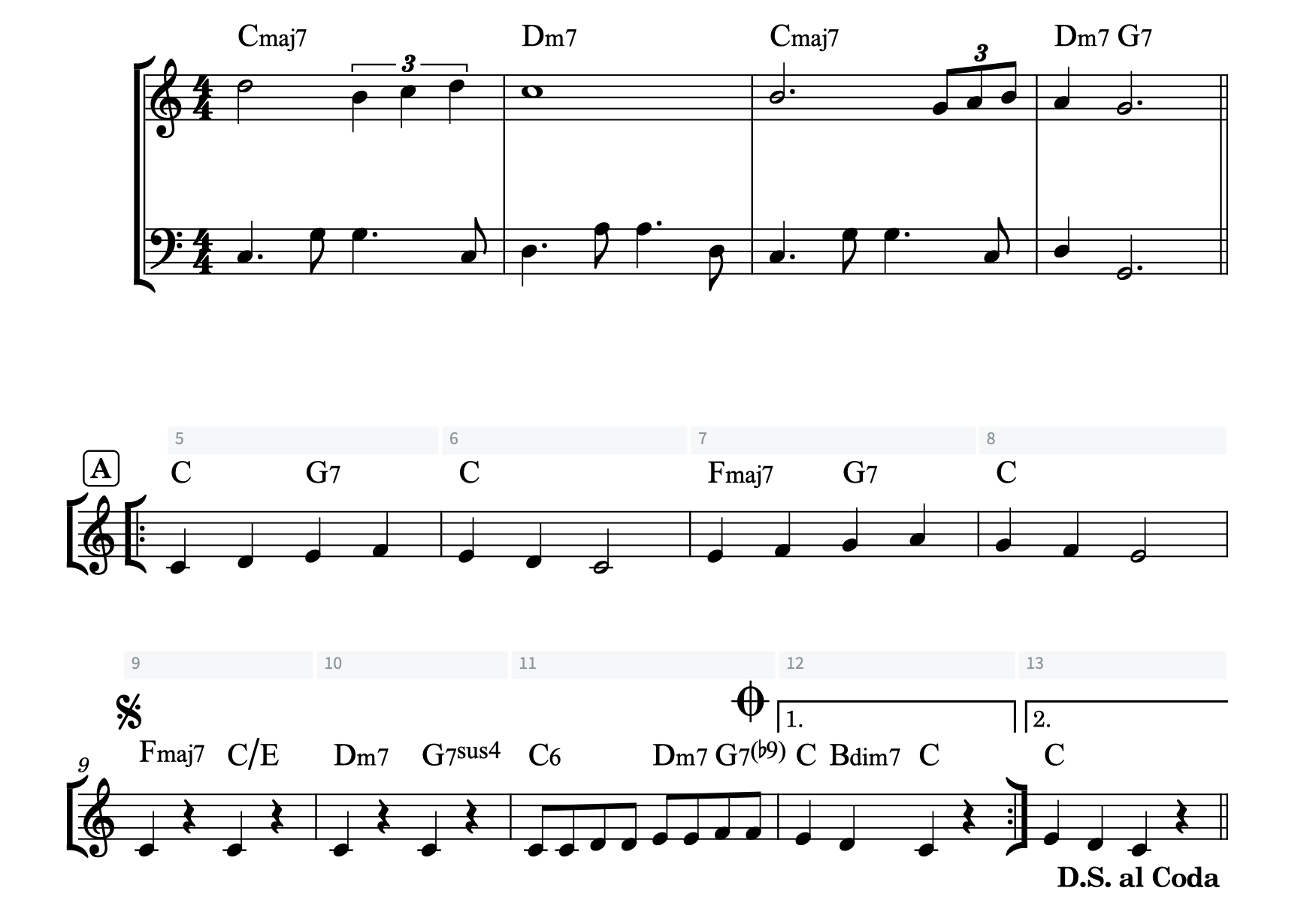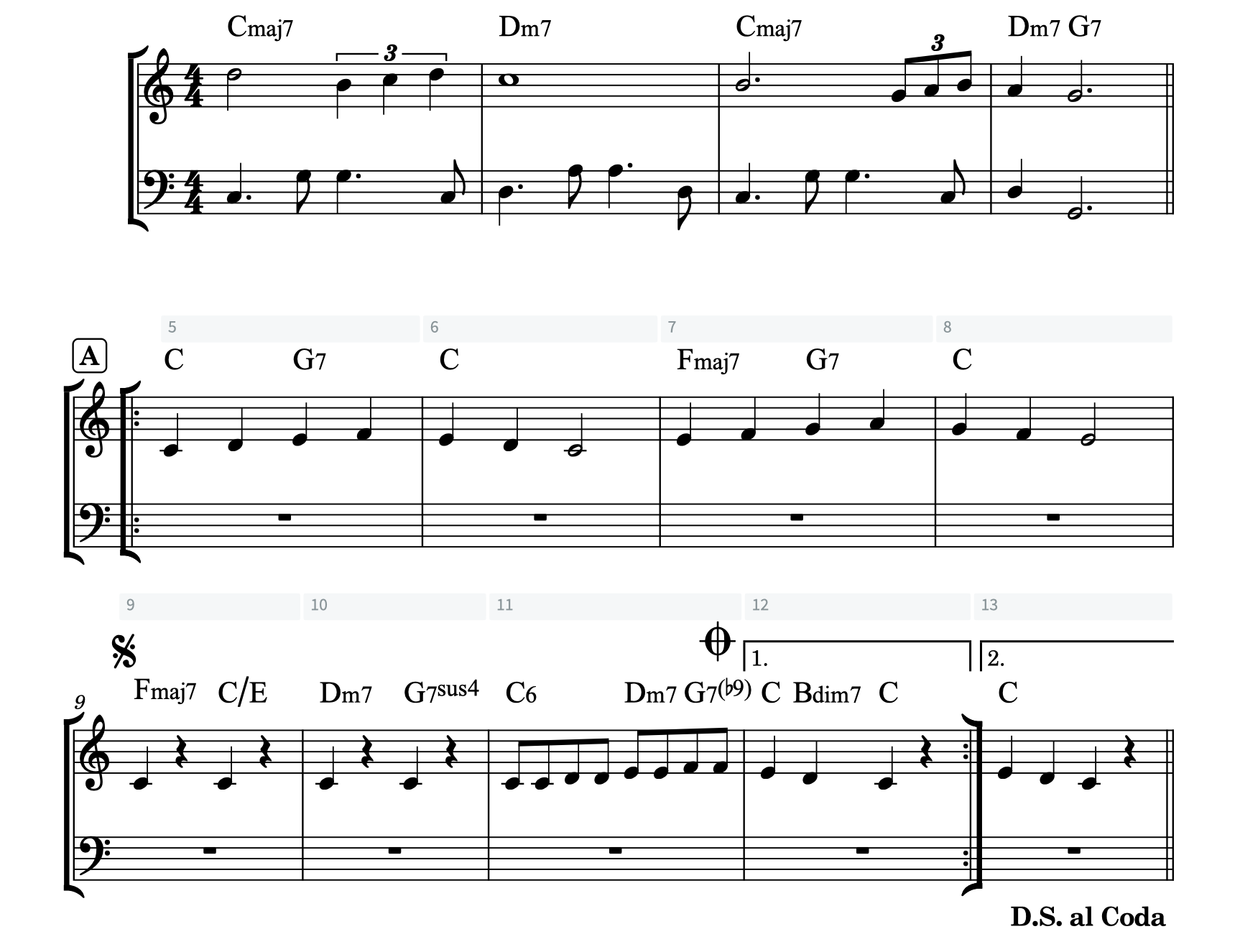 このようなリードシートができましたが、組段と組段の間隔が少し開いているように見えるので、この間隔を調整していきます。