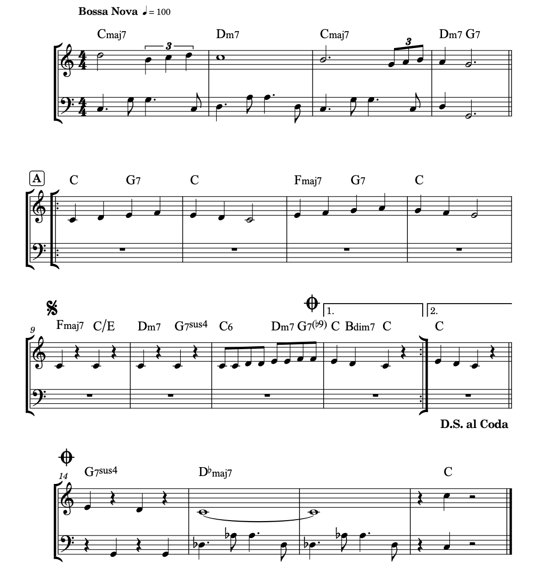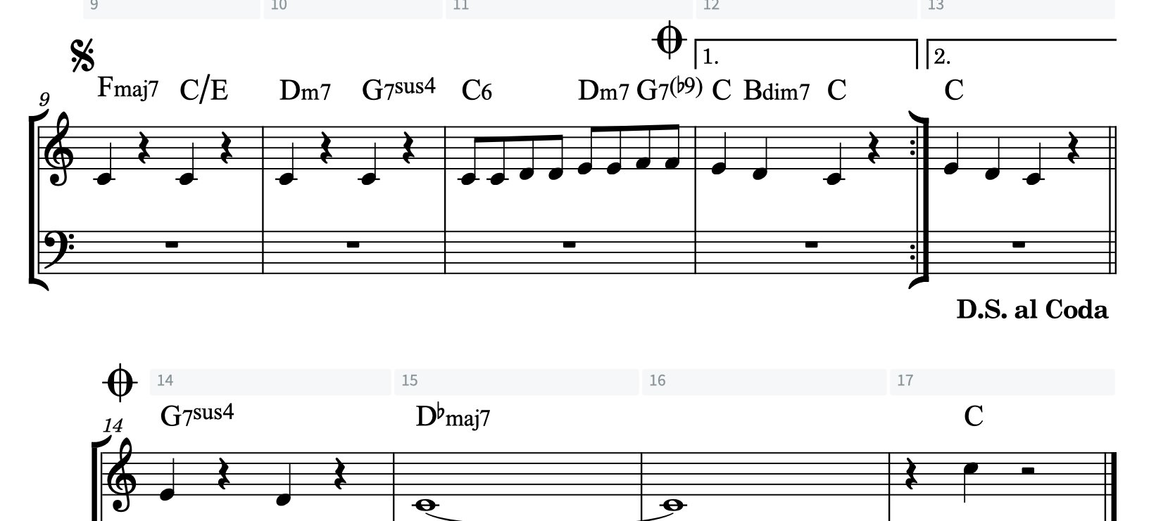 例1:13小節目の終わりに D.S. al Coda
