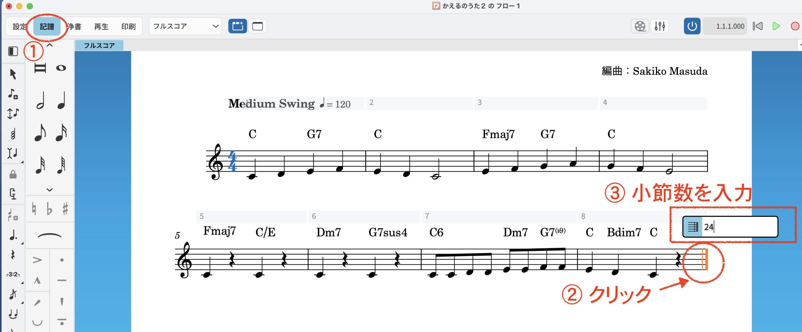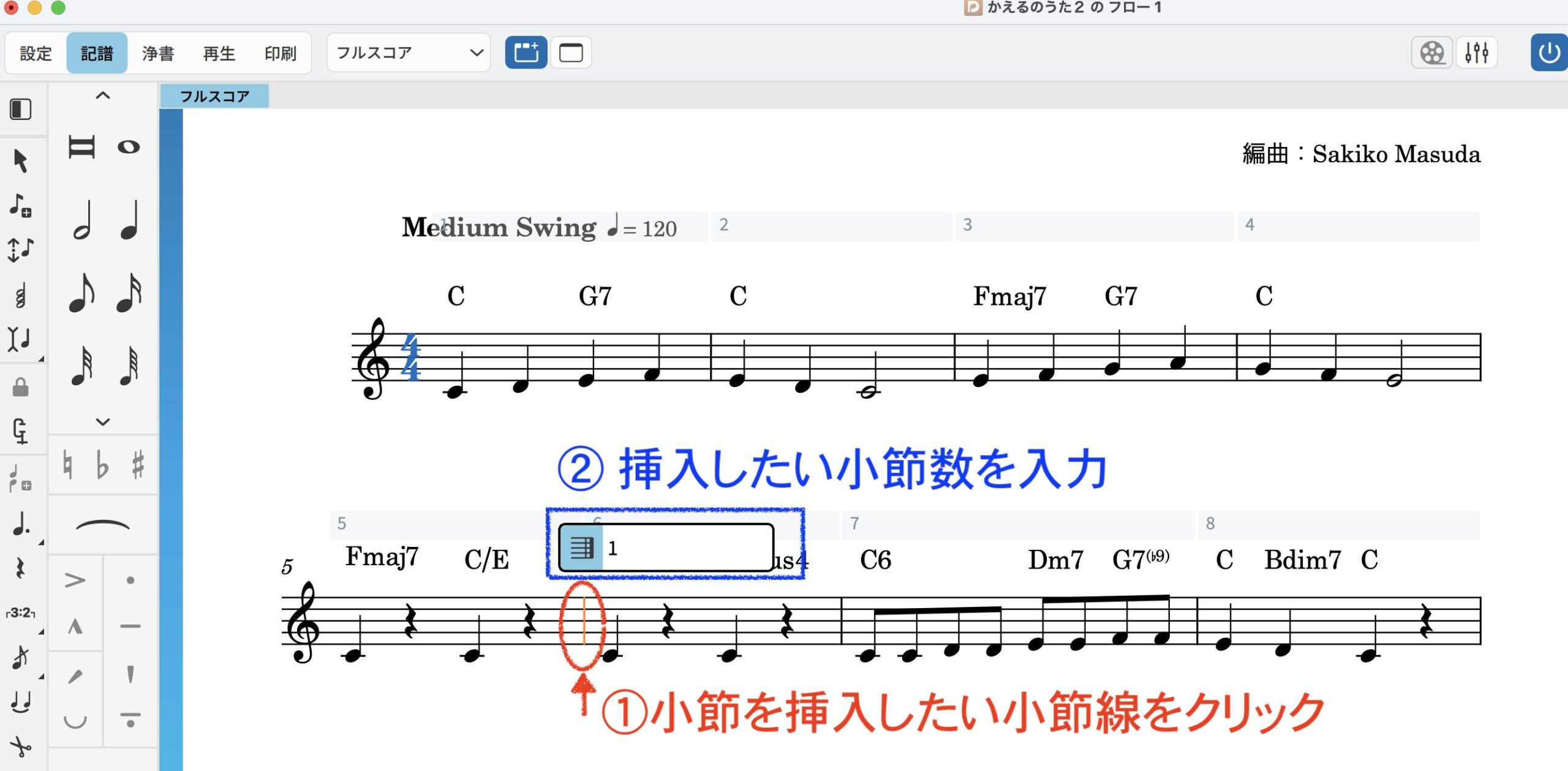 まずは、小節の追加・挿入・削除の方法をみていきましょう。