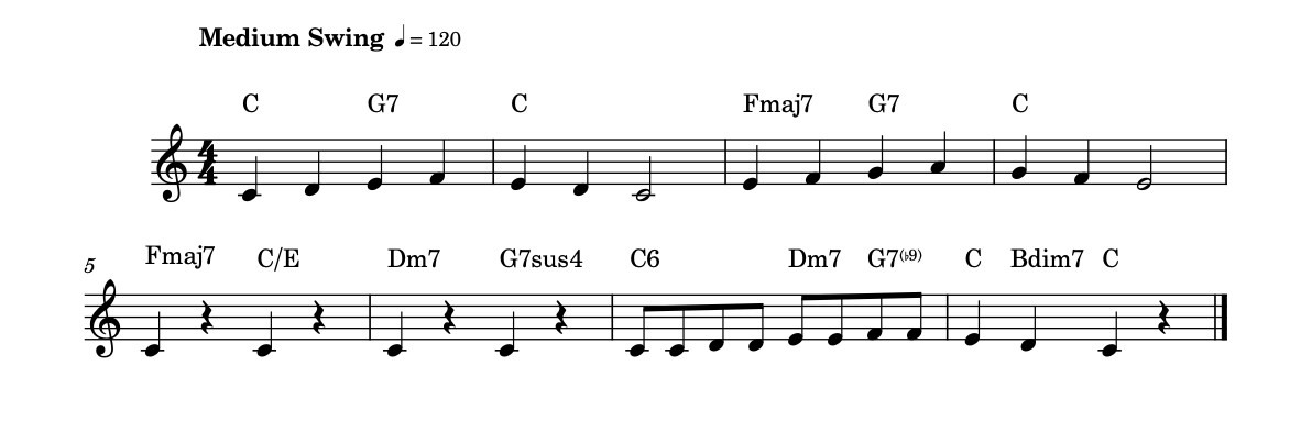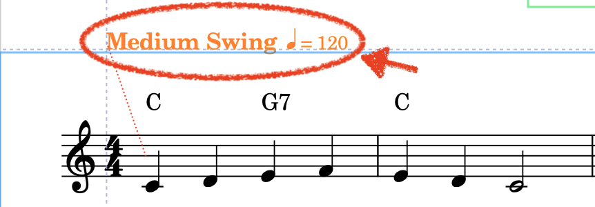 完成したリードシートでは、テンポ記号を移動しています。