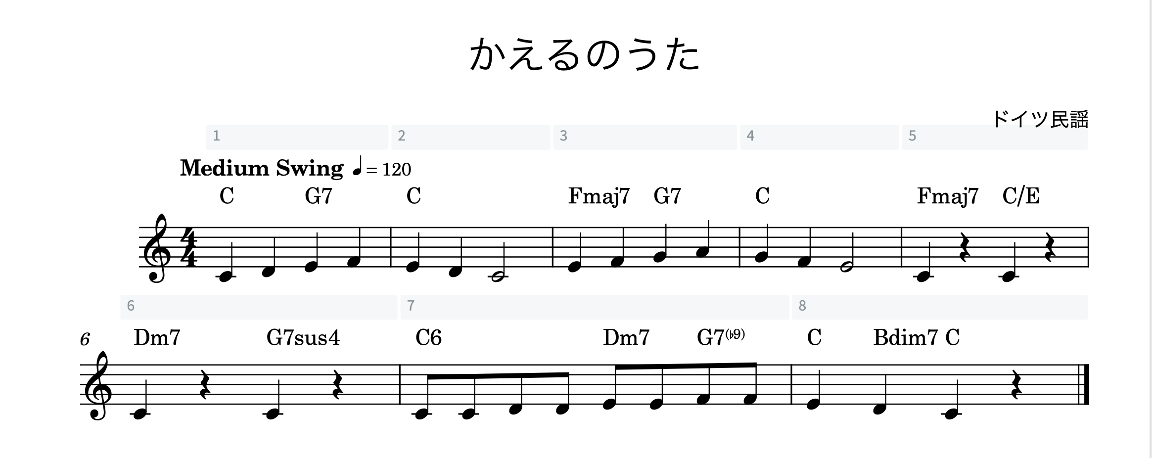 次の『リードシートを作ってみよう No.5』は、組段(1段に何小節入れるか)の調整をしていきます!