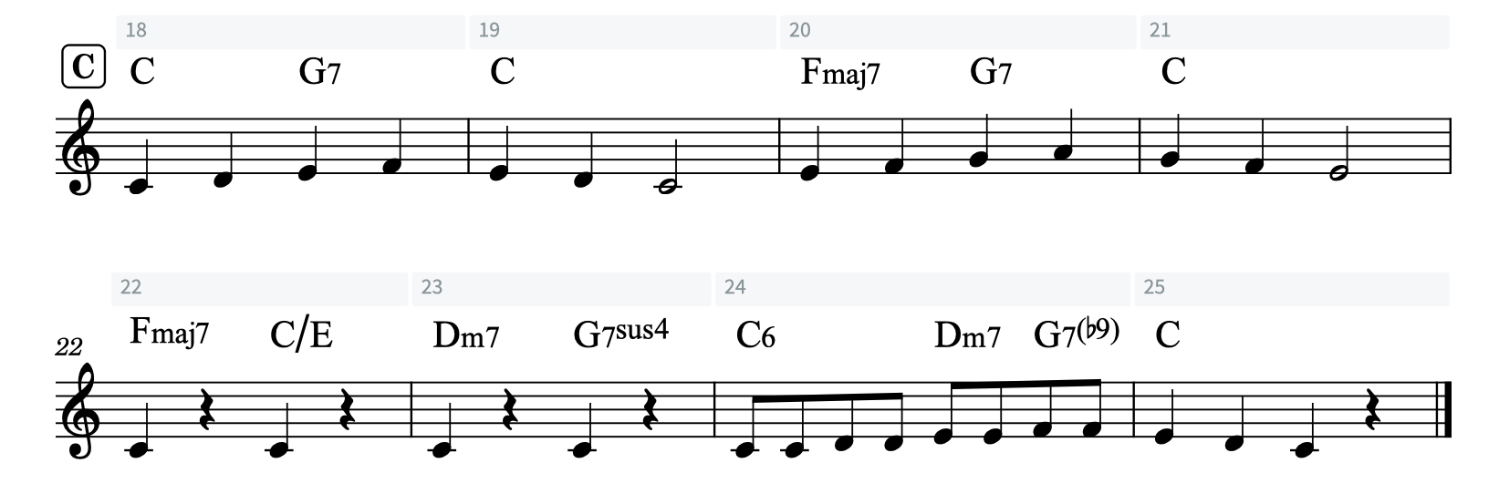 転調ができ、『かえるのうた2』のリードシートが完成です!!
