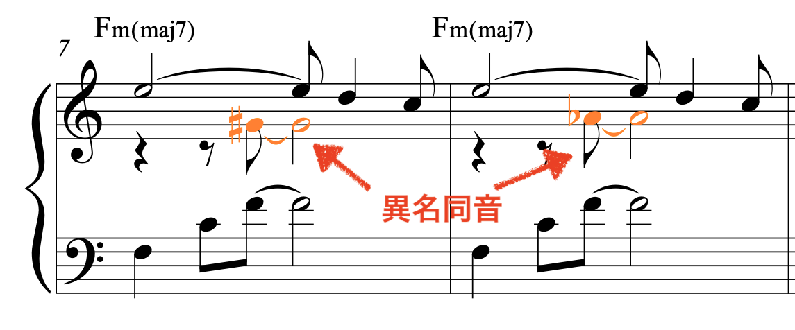 上のノート名使用(フラットに切り換えのイメージ):F17