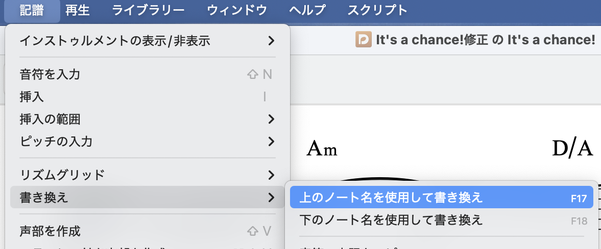 下のノート名使用(シャープに切り換えのイメージ):F18