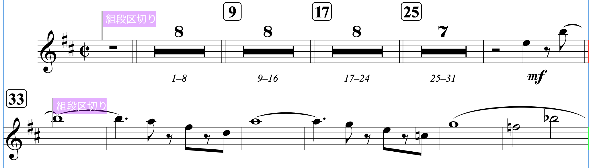 組段の先頭にしたい小節(またはその小節内の音符など)を選択して:
