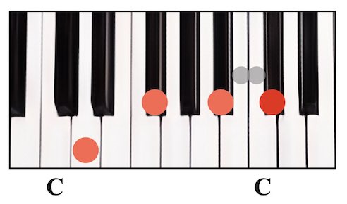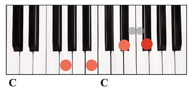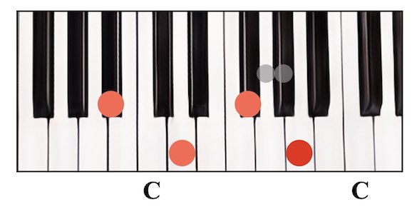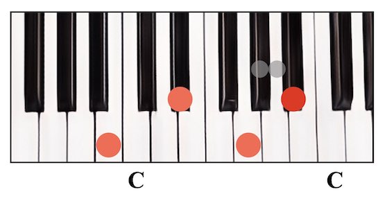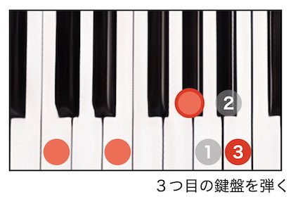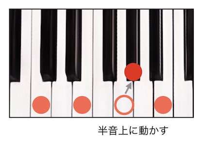 - その上に3つ鍵盤を進めた音を足す(間に2つ鍵盤が入っている状態)