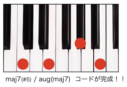 ピアノで弾いて覚える maj7(#5) コードの作り方でした。