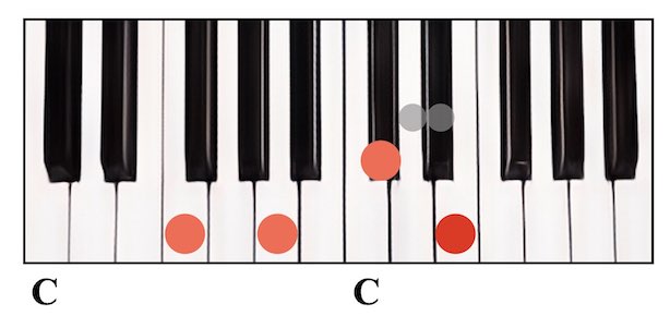 鍵盤の位置がわかりやすいようにCだけ表記しています。