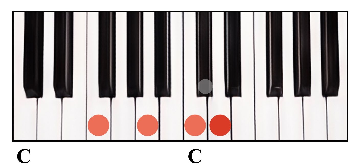 鍵盤の位置がわかりやすいようにCだけ表記しています。